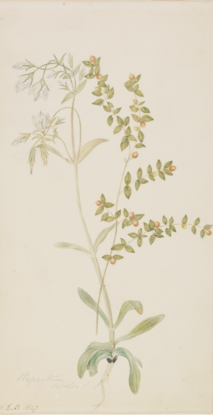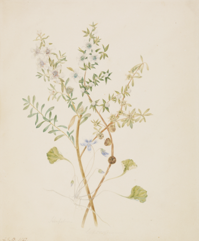The Royal Society of Tasmania’s art collection contains six wonderful botanical drawings by little known artist Ann Eliza Buckland (1790–1873). Disappointingly, there is no record to indicate how or when the collection came to the Society – only that it appears on the 1965 Loans List.