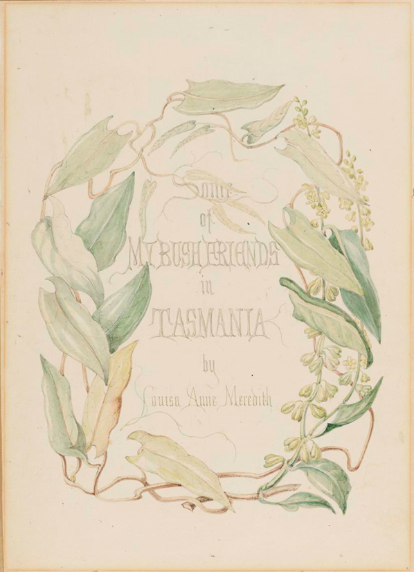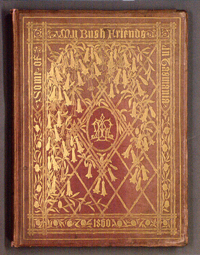 This work has been described as an ‘Impressive volume with stunning full page chromolithographic botanical plates of native Tasmanian flowers, in an embossed presentation leather binding. Natural history verse accompanied by illustrations, by an outstanding woman artist. The design of the book owes much to Owen Jones, the designer of the famed Grammar of Ornament and Edward La Trobe Bateman, who worked with Jones on various projects as illustrator and designer. Bateman collaborated with Meredith on both her books, providing lettering and edging details that are hallmarks of his work.’