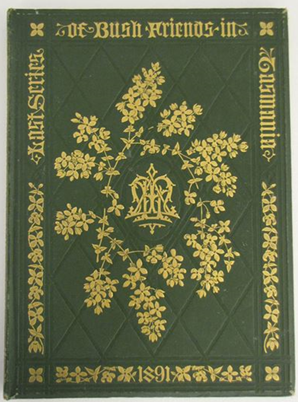 Bateman is best remembered for his contributions to book design. His initial headings, tailpieces and titles engraved on wood by Samuel Calvert for several catalogues issued by the Melbourne Public Library from 1861 were the first instances of Australian flora being used for decorative motifs. The two volumes of Louisa Ann Meredith’s book, Some of My Bush Friends in Tasmania, 1860 and 1891, which scarcely differ from the Owen Jones gift books, each contain Bateman’s ‘quaint lettering’ in their poem-titles and display his designs on their embossed covers (Australian Dictionary of Biography).