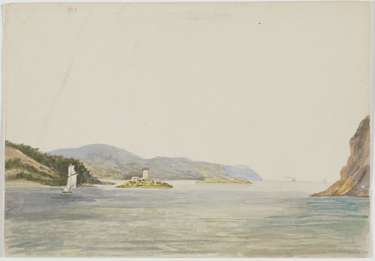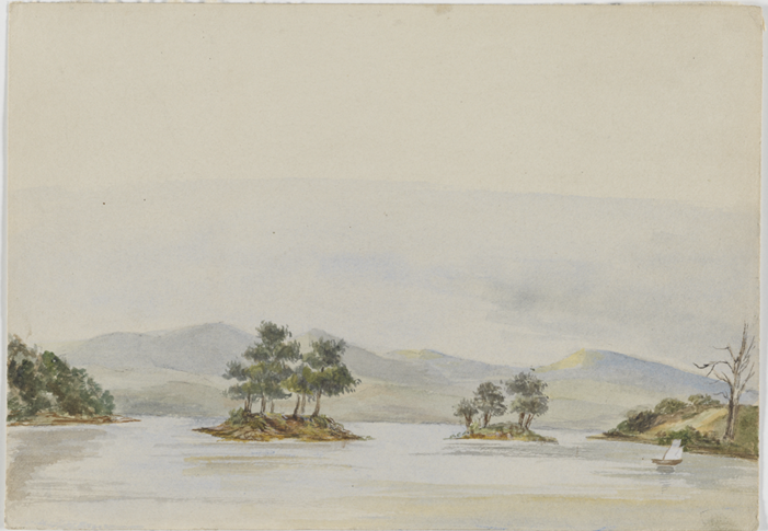 In all the material I have been able to find about James Lucas, there is no record of where or when he learned to paint. It seems likely that he may have observed the English-trained naval officers he served with painting coastal panoramas and learned from them. While his works may not be as skilful as some in the Royal Society’s collection, they are quite well observed and are valuable images of nineteenth century Tasmania.