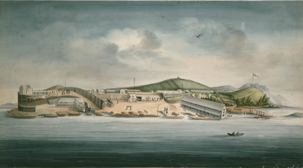 This month I will look at the work of another naval officer, Captain James Lucas. There is no record of how the eight watercolours by James Lucas came to be in the Royal Society of Tasmania Art Collection. It may have been part of the push by the Royal Society to collect items relating to Tasmanian history in around 1900 (see previous Newsletter articles about this).