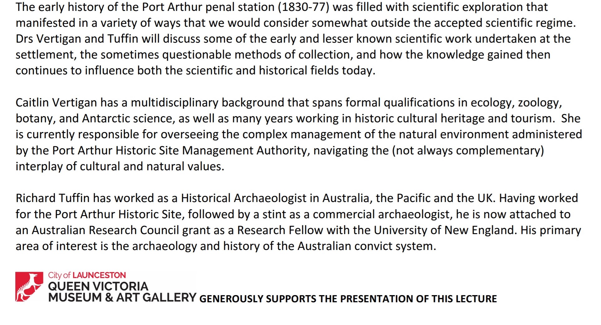 Drs Caitlyn Vertigan and Richard Tuffin – Shoot, Catalogue, Eat: Interacting with Nature at a Tasmanian Penal Station – Sunday 22 July @1.15 pm, Meeting Room, QVMAG Inveresk